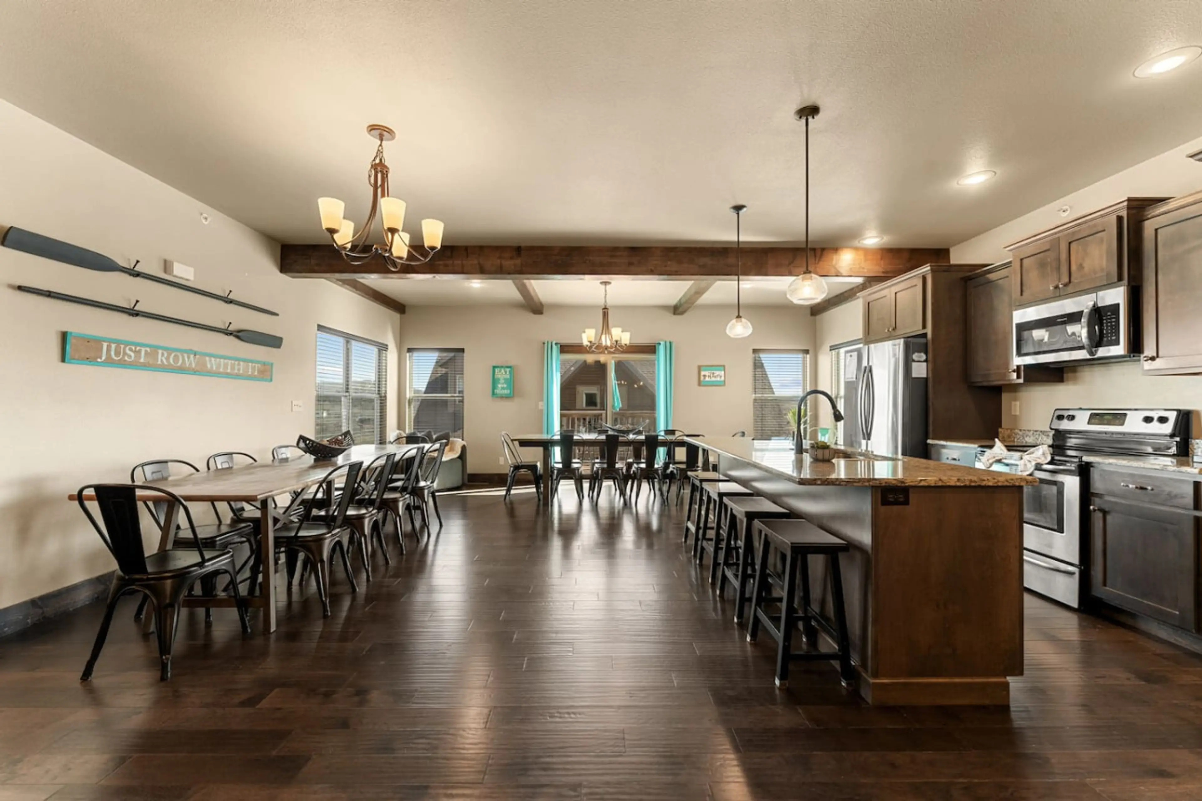 Escape to our 5-bedroom lakefront lodge on Table Rock Lake, ideal for up to 12 guests. Located on Indian Point, just 5 minutes from Silver Dollar City, this retreat offers a game room with arcade games, a media room, easy lake access, 2 community pools, and a private 10x28' boat slip with trailer pa...